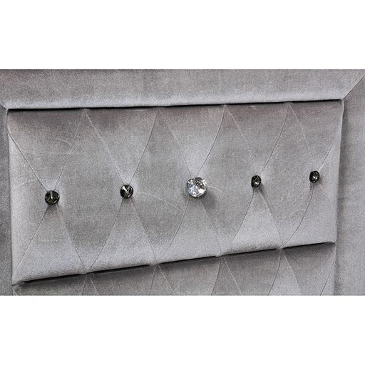 FOA EastAlzir Gray Queen Bed, 88 1/8"L X 87 1/2"W X 66"H, 253lbs. Comforting cushioned flannelette encompasses this chic gray bedroom set. Admire the glamo...
