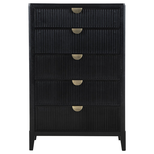 Coaster Z2 PremiumAdd abundant clothing and accessory storage in a stylish bedroom with this modern five-drawer chest. Its compact profile fits virtually anywhere, w...