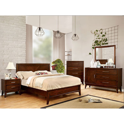 Gorgeous lines and sleek bases give this bedroom furniture a distinctive contemporary edge. With a dark espresso finish, this transitional style mirror adds modern structure to any bedroom settings.