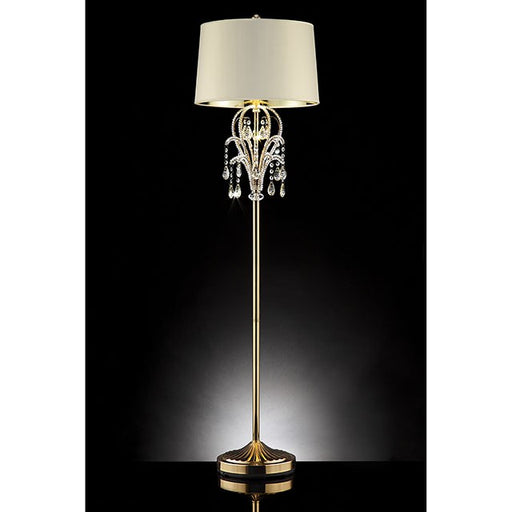 FOA EastRENA Table Lamp, Hanging Crystal, 15"L X 9"W X 27"H, 7.55lbs. Diamond-cut faux crystals, which act as a unique shade, sit atop a metal base, giving...